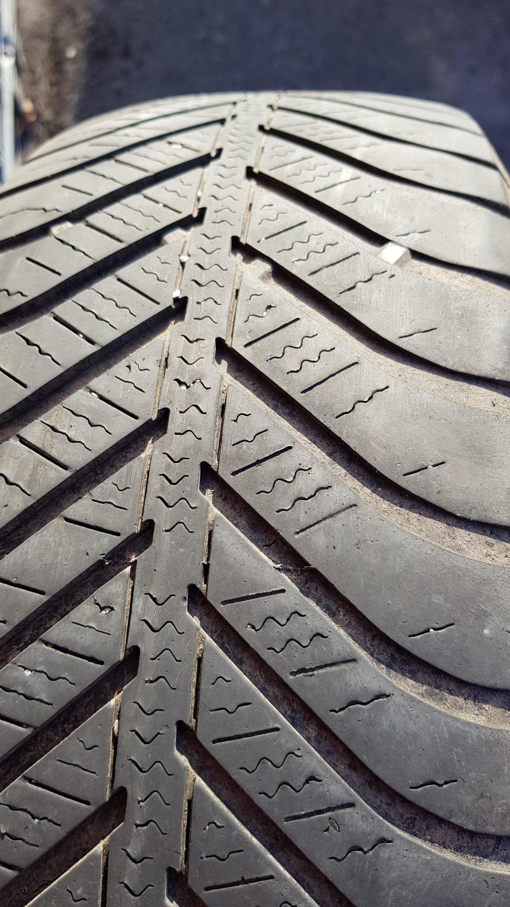 Das Auto wurde mit diesen Reifen ausgeliefert und die wurden bei genanntem km-Stand ausgetauscht. Das Foto ist unmittelbar vor der Demontage von der Felge entstanden.