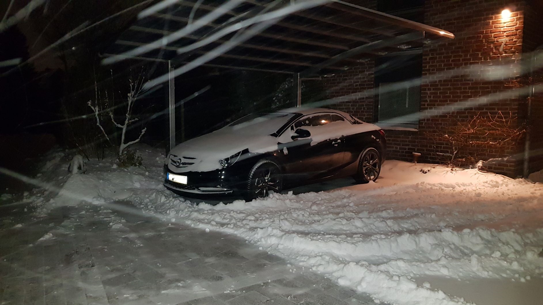 Oh je. Wir haben auch ein Carport. Aber da steht der Accord drin. Der Cascada muss draußen stehen. Den musste ich gestern erst mal ausgraben. Und dann gingen die Türgriffe nicht auf. Musste das Eisspray herhalten. Dann ging es.