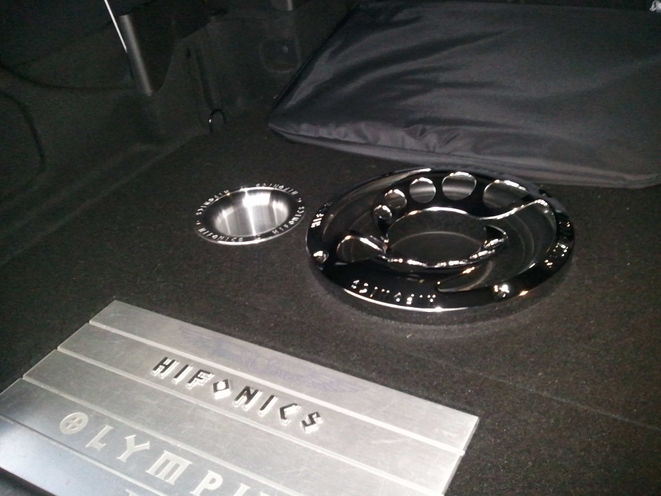 Hier spielt ein Helix W12 Competition in einem ca. 35 Liter ventiliertem Gehäuse. Angetrieben von einer Hifonics Olympus 4 Kanal Endstufe. 2 Kanäle gebrückt für den Subwoofer und 2 Kanäle für das original Frontsystem. Alle Lautsprecher wurden mit einer Elektronischen Frequenzweiche bei 100 Hz getrennt, also sprich der Woofer nach oben und das Frontsystem nach unten.